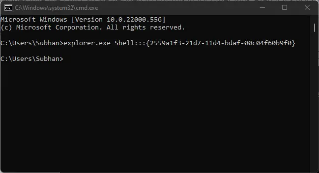 explorer.exe Shell:::{2559a1f3-21d7-11d4-bdaf-00c04f60b9f0}