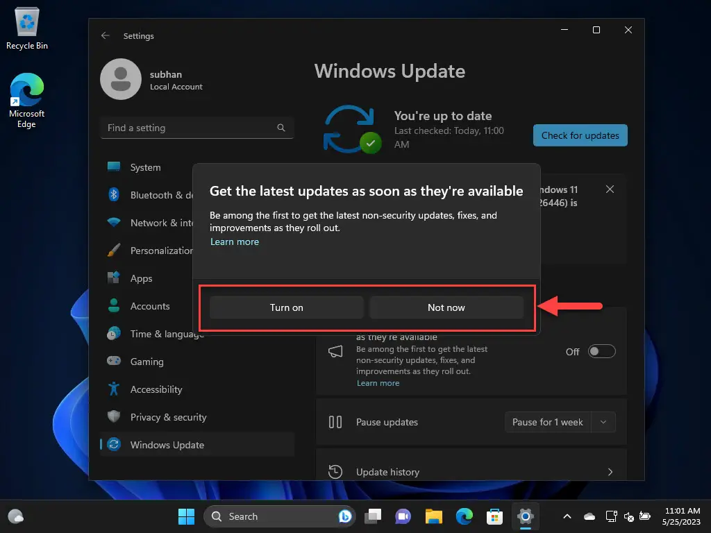 (条件)如果你还没有选择尽快最新的Windows更新是可用的,你可以看到一个对话框弹出。选择你是否想选择。