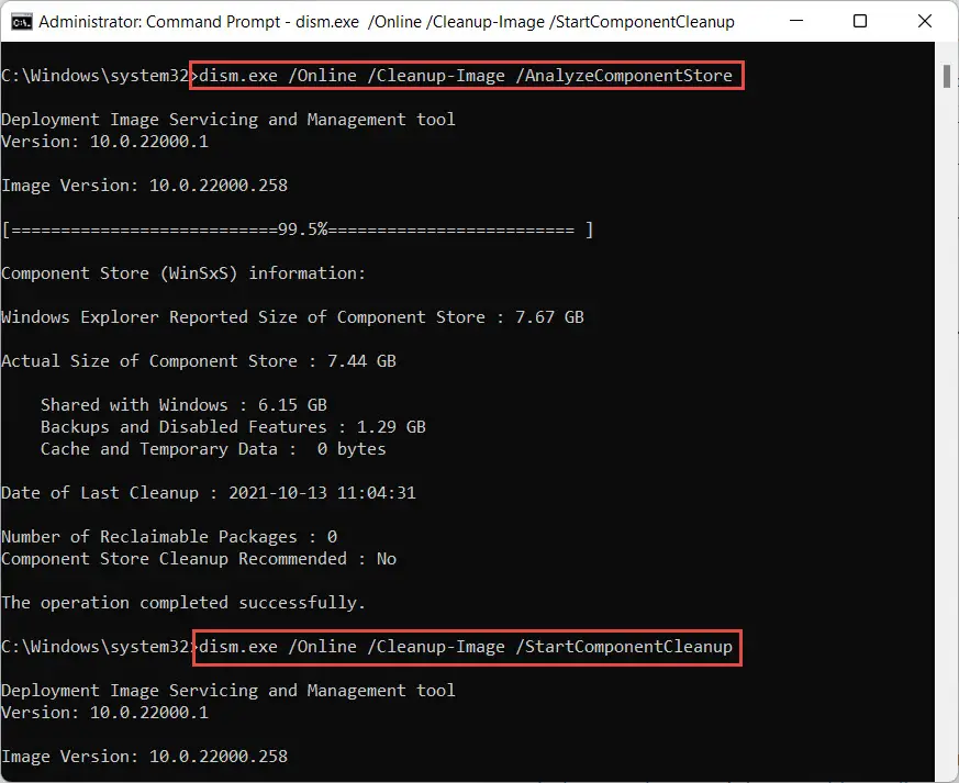 dism。exe /网络/ Cleanup-Image / AnalyzeComponentStore dism。exe /网络/ Cleanup-Image / StartComponentCleanup
