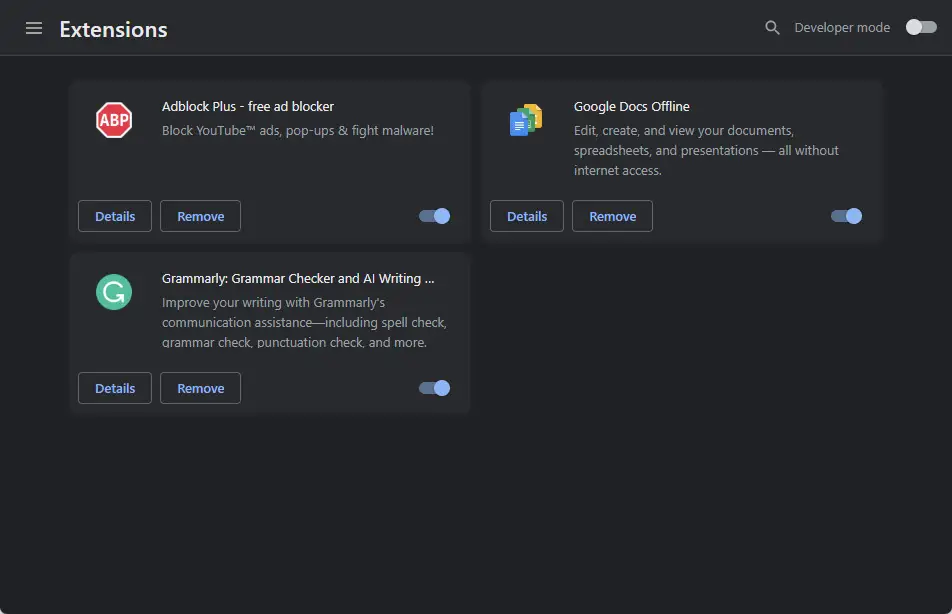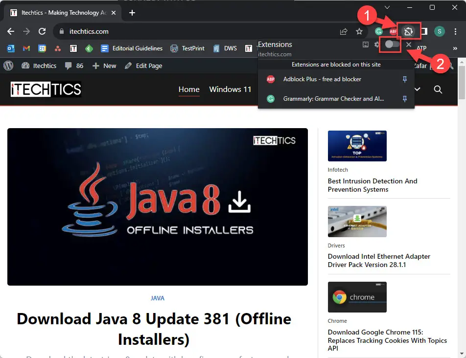 一旦完成以上步骤,你将可以选择控制你所有的扩展的点击一个按钮。不仅如此,您还可以禁用扩展为一个特定的网站只有在保持启用所有其他人。